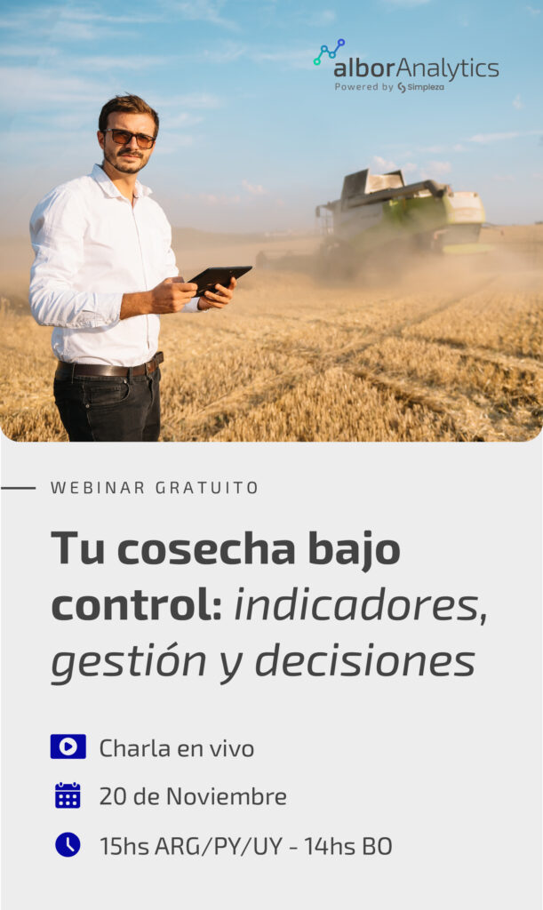 En este webinar vas a descubrir cómo la combinación de Albor Analytics + Albor Campo te permite tener visibilidad integral del negocio: indicadores productivos, margen comercial, stock, riesgo y resultados… todo en tiempo real.